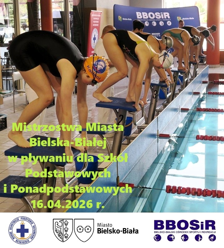 W związku z organizacją „Mistrzostw Miasta Bielska-Białej w pływaniu dla Szkół Podstawowych i Ponadpodstawowych” mamy przyjemność zaprosić szkoły podstawowe i ponadpodstawowe do rywalizacji w dniu 16.04.2026 r. (czwartek) na krytej pływalni „Troclik” w Bielsku-Białej.